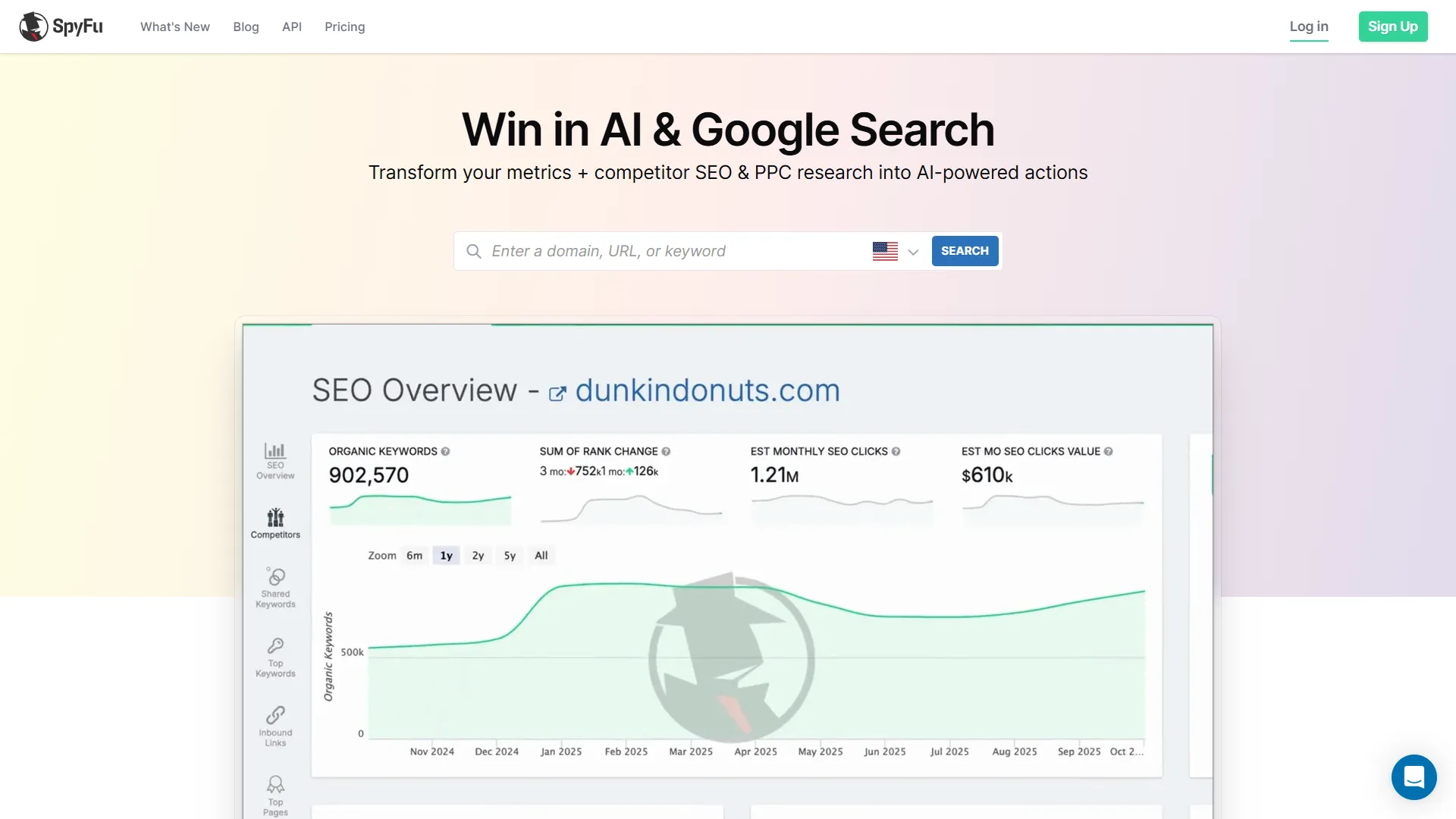 SpyFu gives insight into competitor keywords, ad spend, and ranking history.