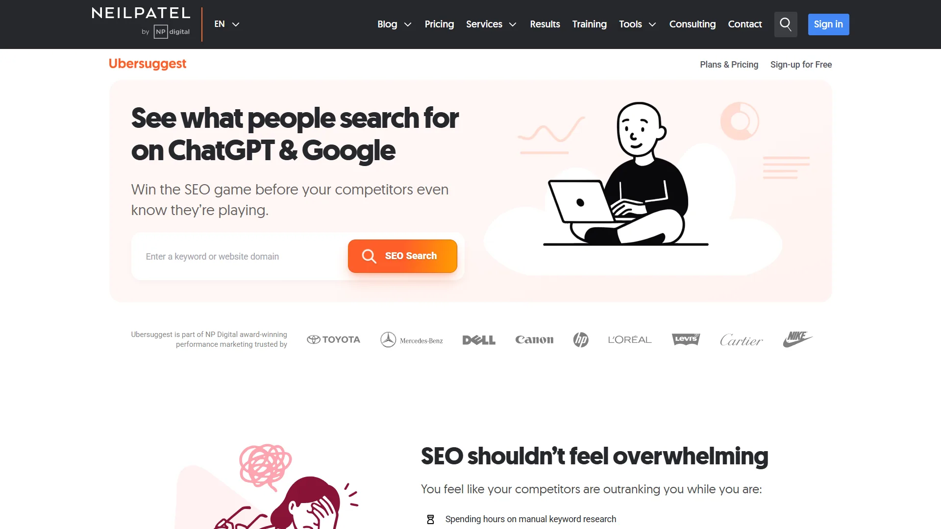 Created by Neil Patel, Ubersuggest offers affordable keyword tracking and traffic insights for small businesses.