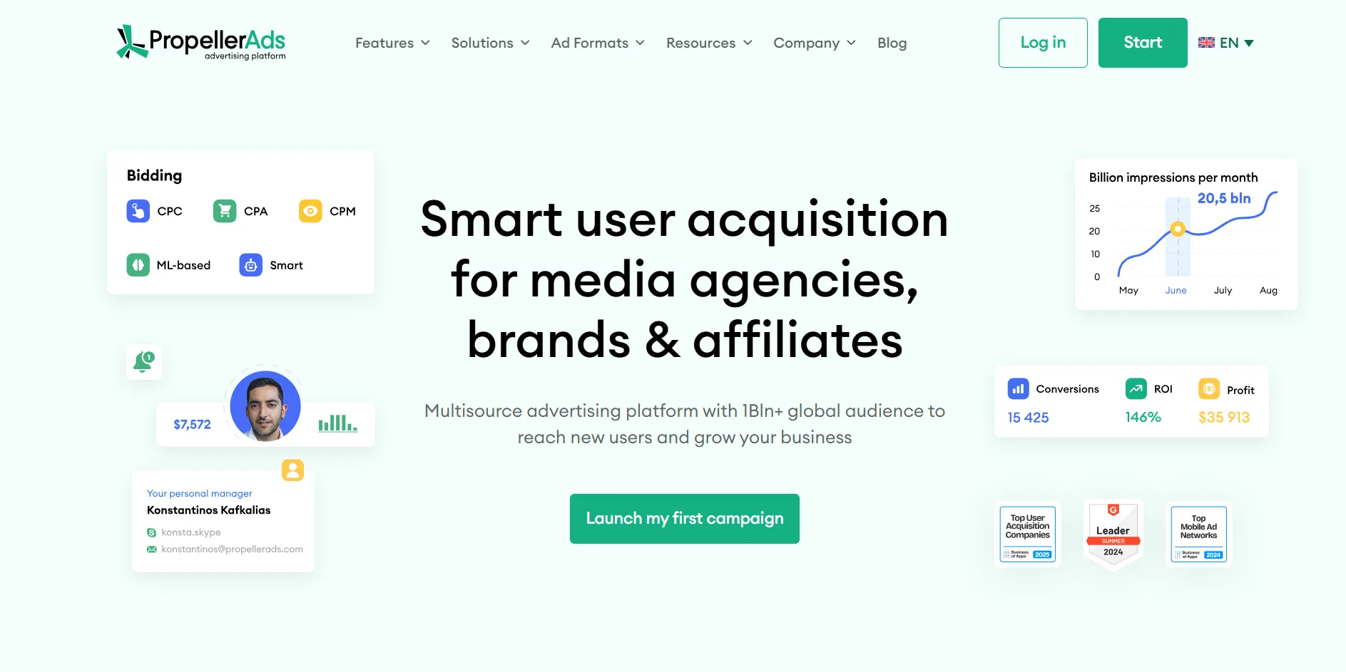 A favorite among experimental publishers, PropellerAds offers multiple engaging ad formats like push notifications, popunders, and interstitials.